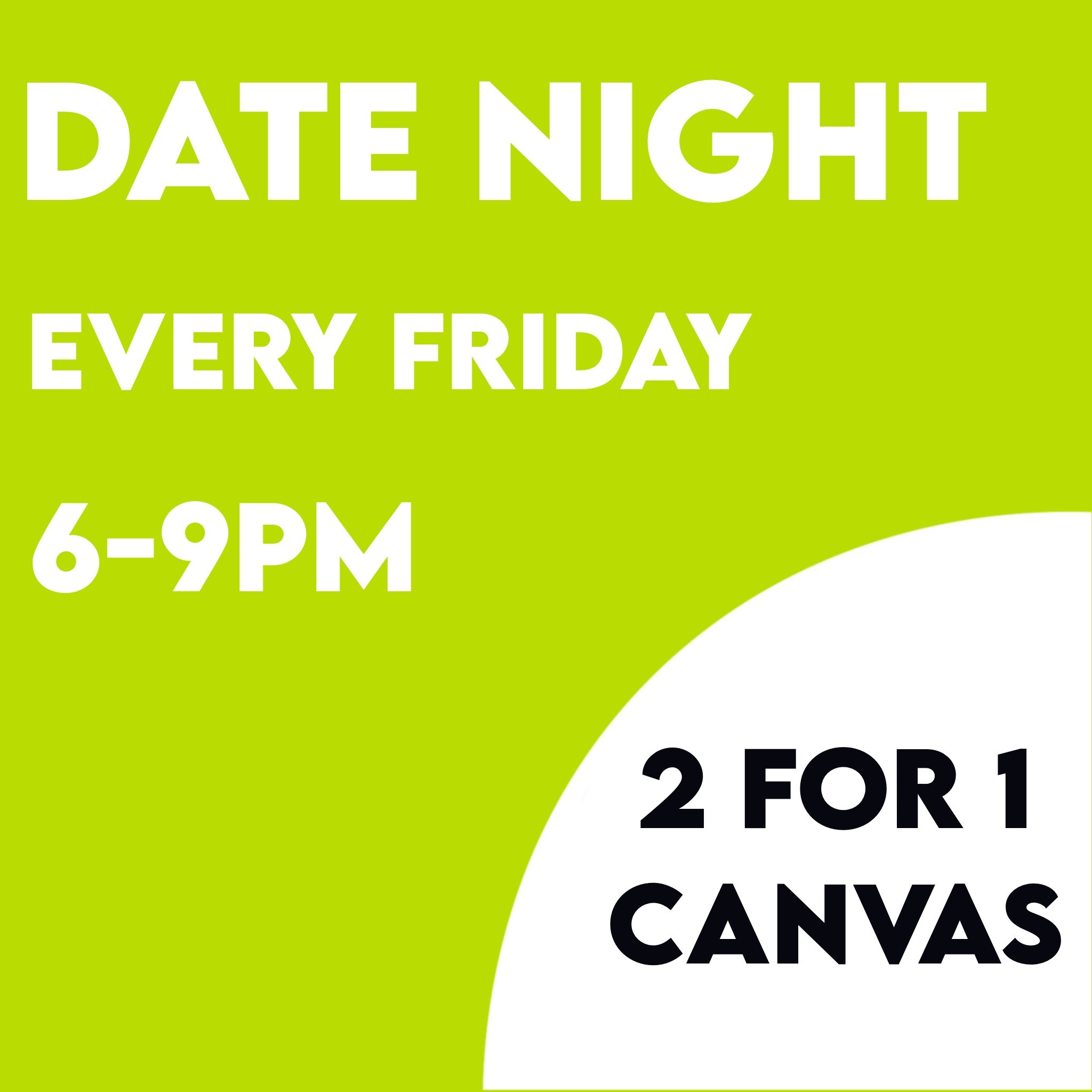 Come in Fridays from 6:00 PM -9:00 PM and try your hand at canvas painting for a date, we have over 100 designs complete with step-by-step instructions and templates. Choose whatever design you like; it does not have to be the same for both canvases. Follow the directions or customize colors and details to suit your taste and work at your own pace.  Our talented staff are always on hand to help. Have fun while you paint with your date!